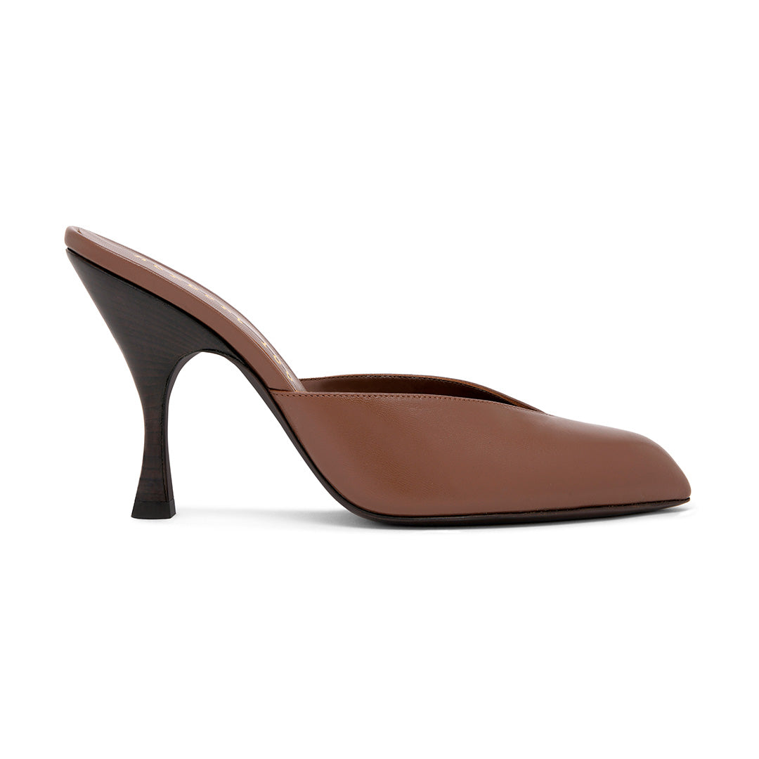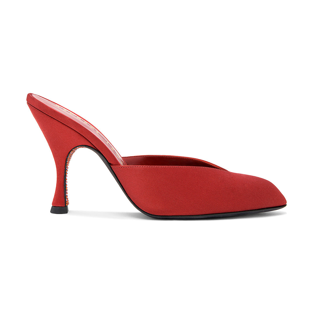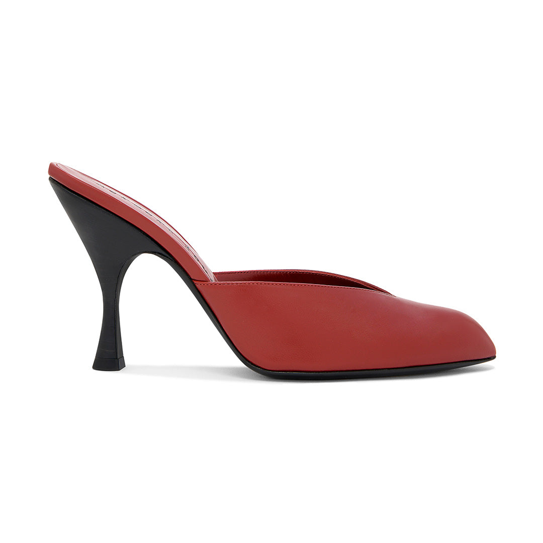 This barely there heeled mule is designed to elongate the leg with a striking, minimalist silhouette. A low V-cut upper reveals just a hint of toe cleavage while holding the foot securely in place. Inspired by the iconic “Cyranos” last made famous by Beth and Herbert Levine, the sculpted toe and 95mm heel combine for a look that’s both daring and refined, sure to turn heads.